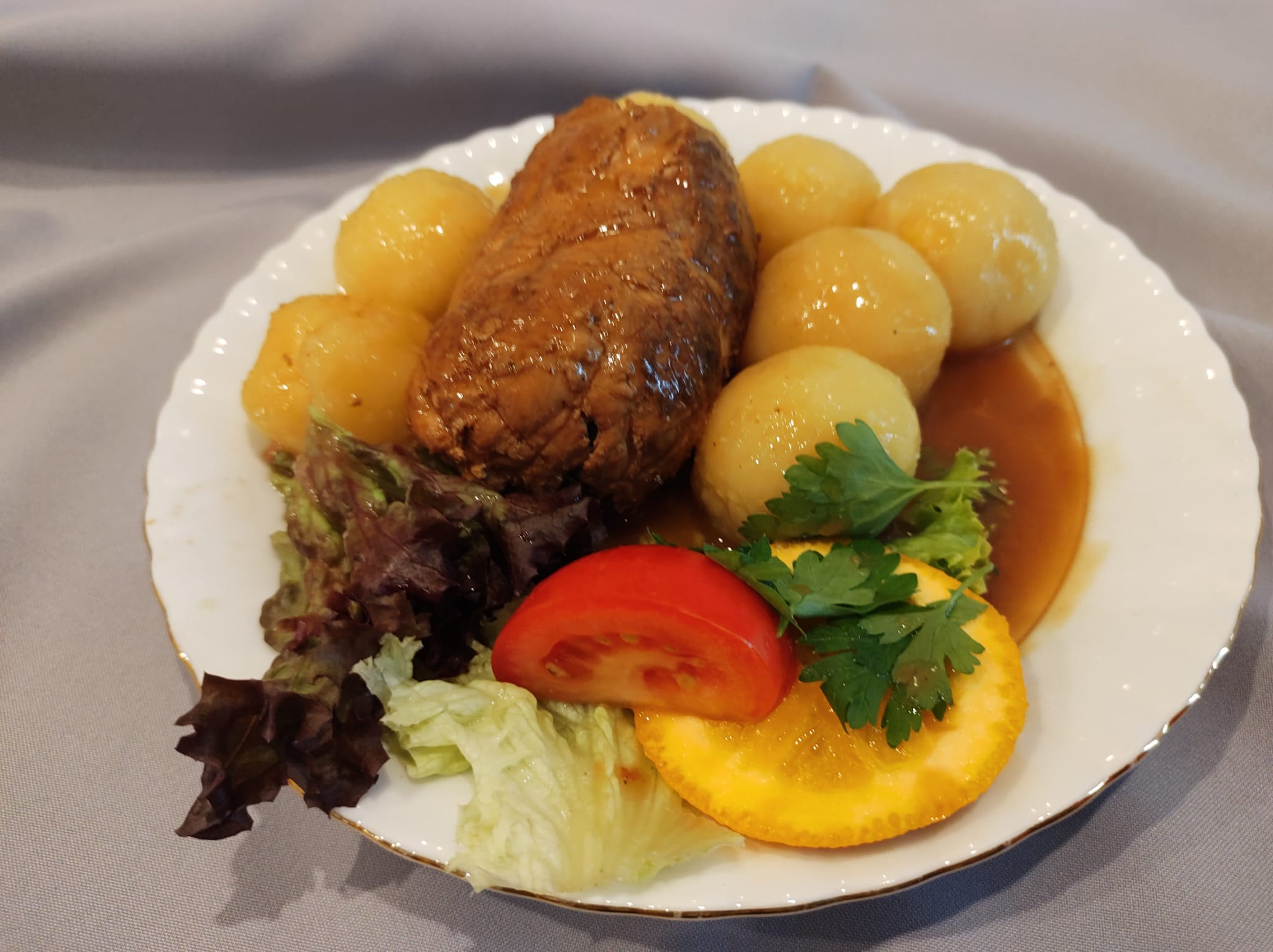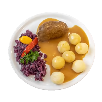 „Zamówiłam dziś typowy śląski obiad, rosołek pyszny, rolada mięciutka, kluski to samo, kapusta czerwona bardzo dobra i co najważniejsze sos widać, że mięsny i do tego gęsty. 💪